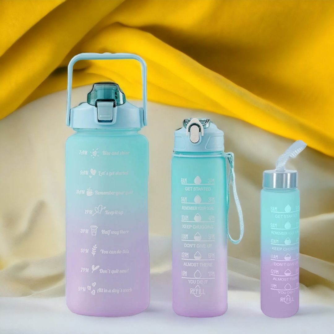 3PCS Family Water Bottle Set 2000ML 900ML 280ML Sports Water Bottle With Time Marker Stickers